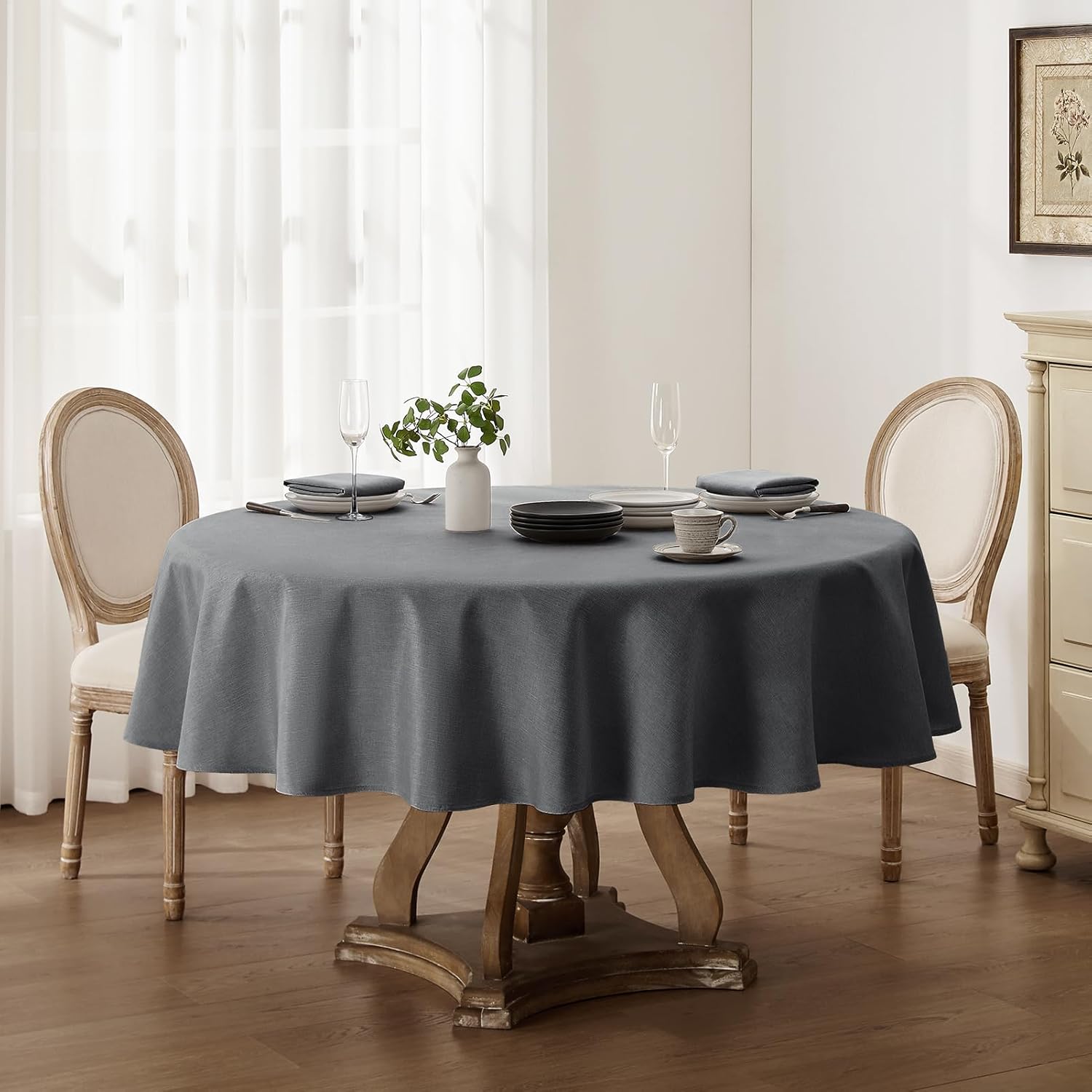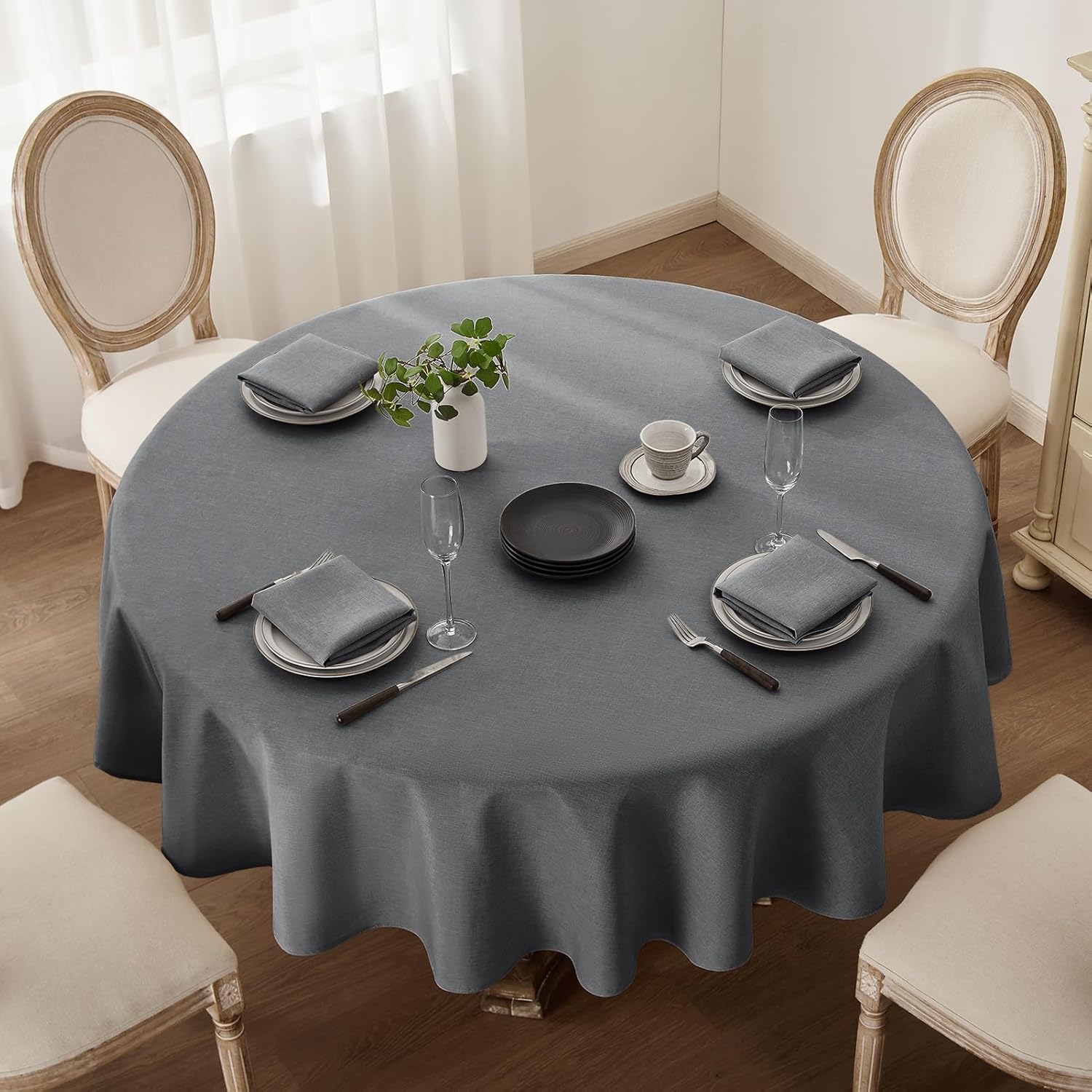 Softalker manteles redondo 120 cm de diámetro mantel antimanchas gris oscuro mantel de Falso Lino, duradero, lavables, protege la mesa, adecuado para sala de estar, comedor, cocina, 1 pieza,2-3 plazas
