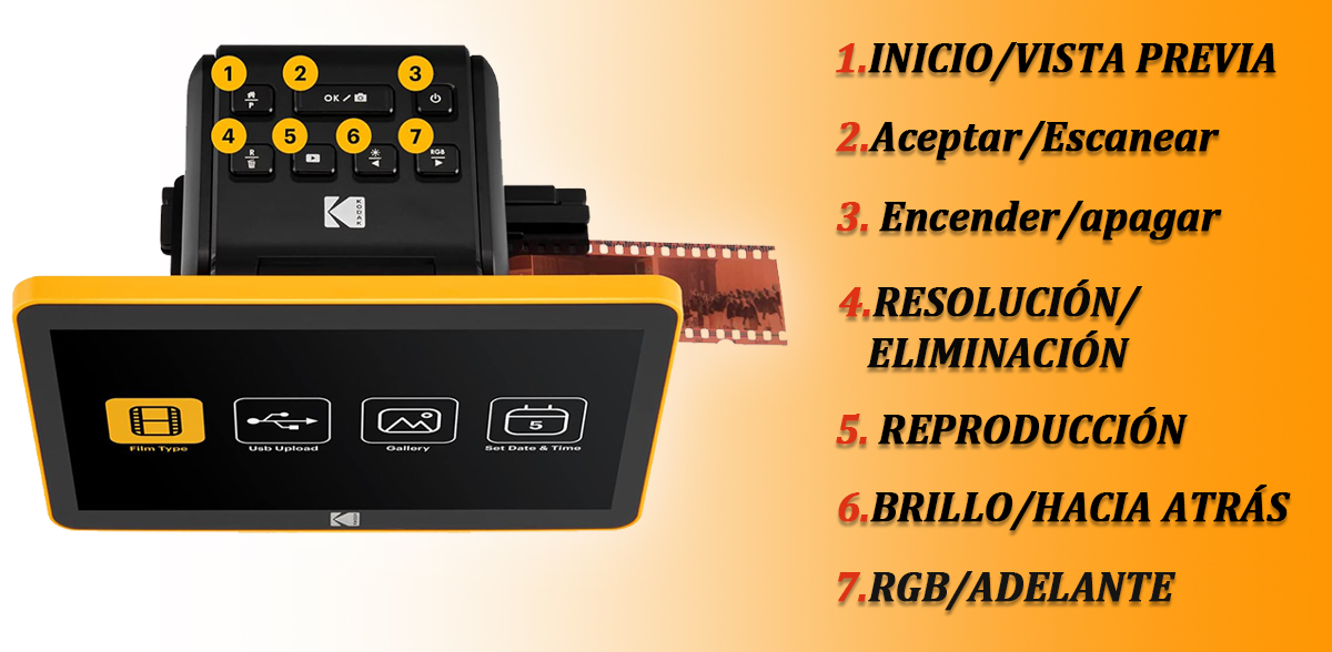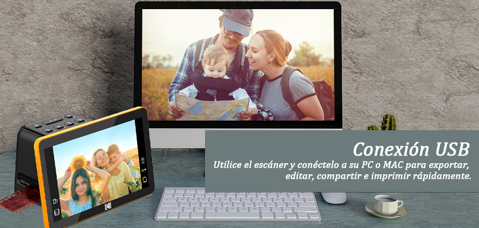 Escáner de película digital KODAK Slide N SCAN: ajuste de color con controles integrados de exposición, brillo y color para una personalización precisa y resultados óptimos.Compra ahora y recibe un regalo: 36 GB de almacenamiento y 5 rollos de película a color Kodak.