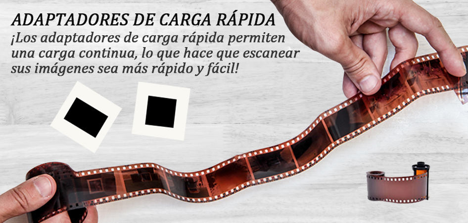 Los adaptadores de carga rápida permiten la carga continua de película, agilizando el proceso y haciendo que el escaneo de imágenes sea más rápido y eficiente. ¡Dedica menos tiempo a la configuración y más a preservar tus recuerdos!
